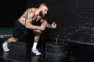 Smith machine front box squats are a sensible idea for more mature muscle builders, since the box provides an elevated platform and put’s less stress on the knees. To get started, practice this move without a barbell at all, at first, and only add weight when you are comfortable with form. The fixed path and relative safety of the barbell when placed on a smith machine will serve you well here. Then, if you can, try to pause at the bottom of the squat for increased muscle tension and activation.